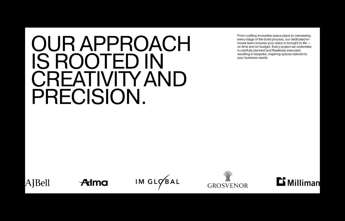 The structure focuses on simplicity and ease of navigation, mirroring their streamlined, end-to-end service. Subtle interactions and refined typography elevate the brand without overwhelming it, creating a digital presence that feels as considered and well-crafted as the spaces they design.